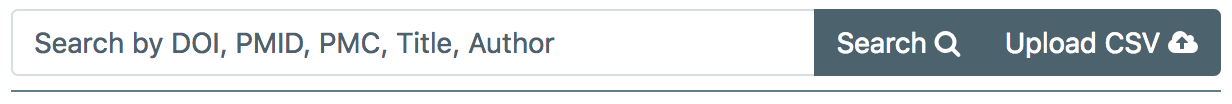 You can search for publications using either PMIDs, DOIs, PMCs, article titles or author names. Alternatively, multiple publications can be added by clicking "Upload CSV".